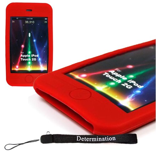 Kroo Red Case for Apple iPod 2nd Generation Touch Skin Case, Silicone case for 2nd Gen iTouch 8GB, 16GB, 32GB 8G, 16G, 32G + Includes a 4-inch Determination Hand Strap Feature