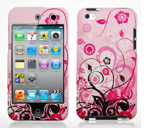 Pink Flower Black Vine Design Rubberized Snap on Hard Cover Protector Faceplate Cell Phone Case for Apple Ipod Touch 4G 4th Generation Touch4 itouch 4 + Premium LCD Screen Guard Film Review